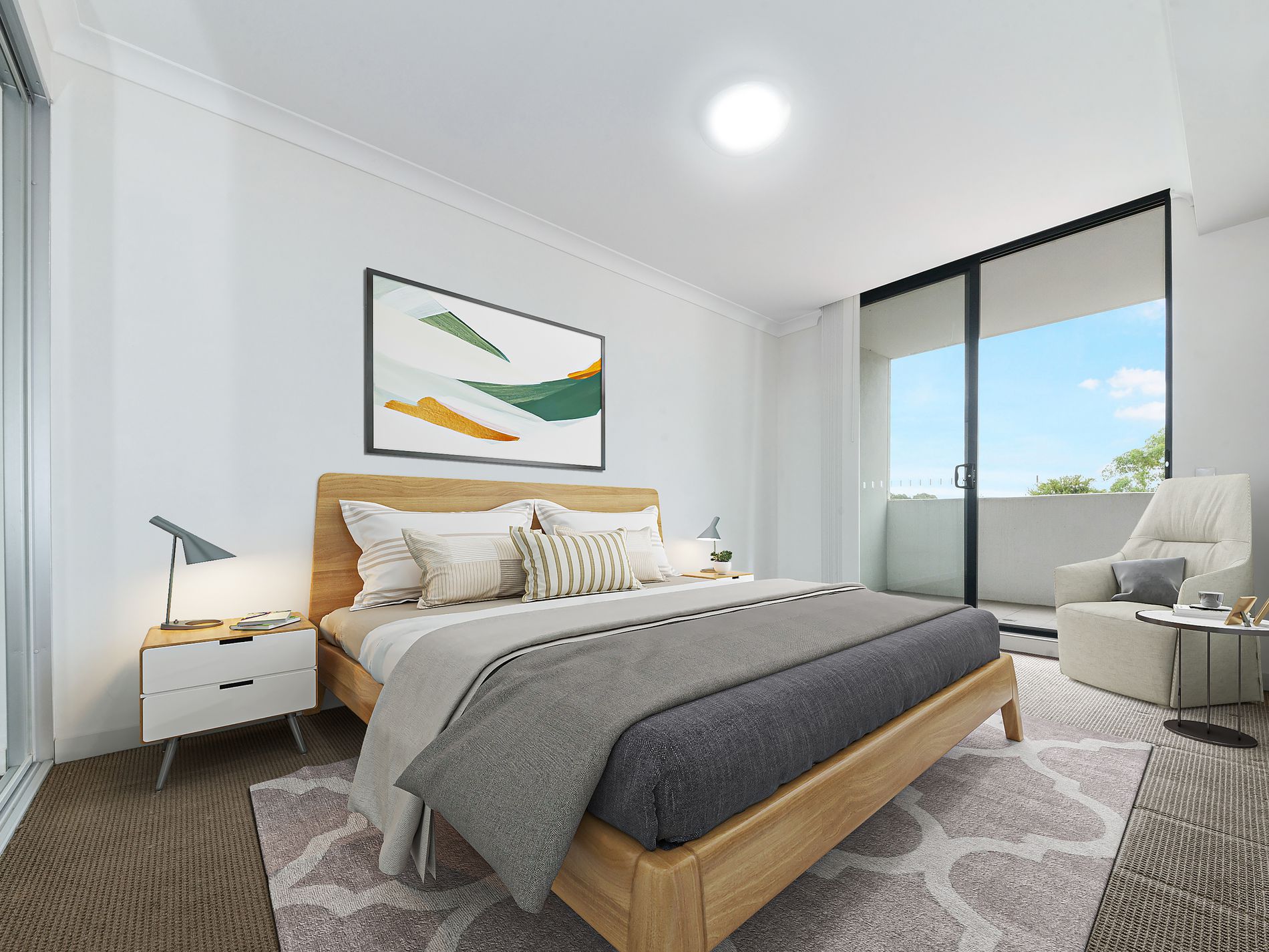 -Bedroom with built-in robe, accessible to balcony