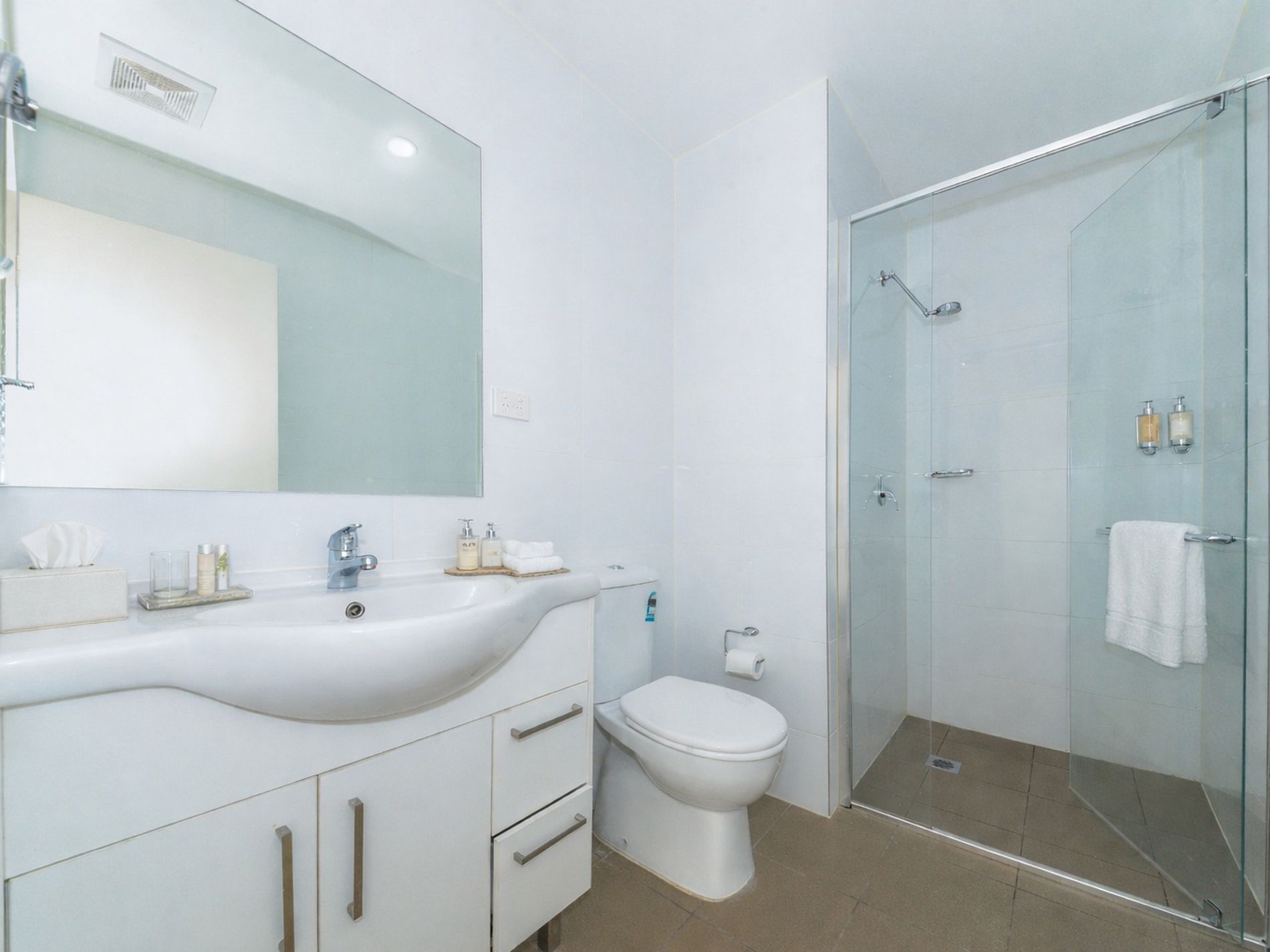 -Stylish fully tiled bathroom with shower screen