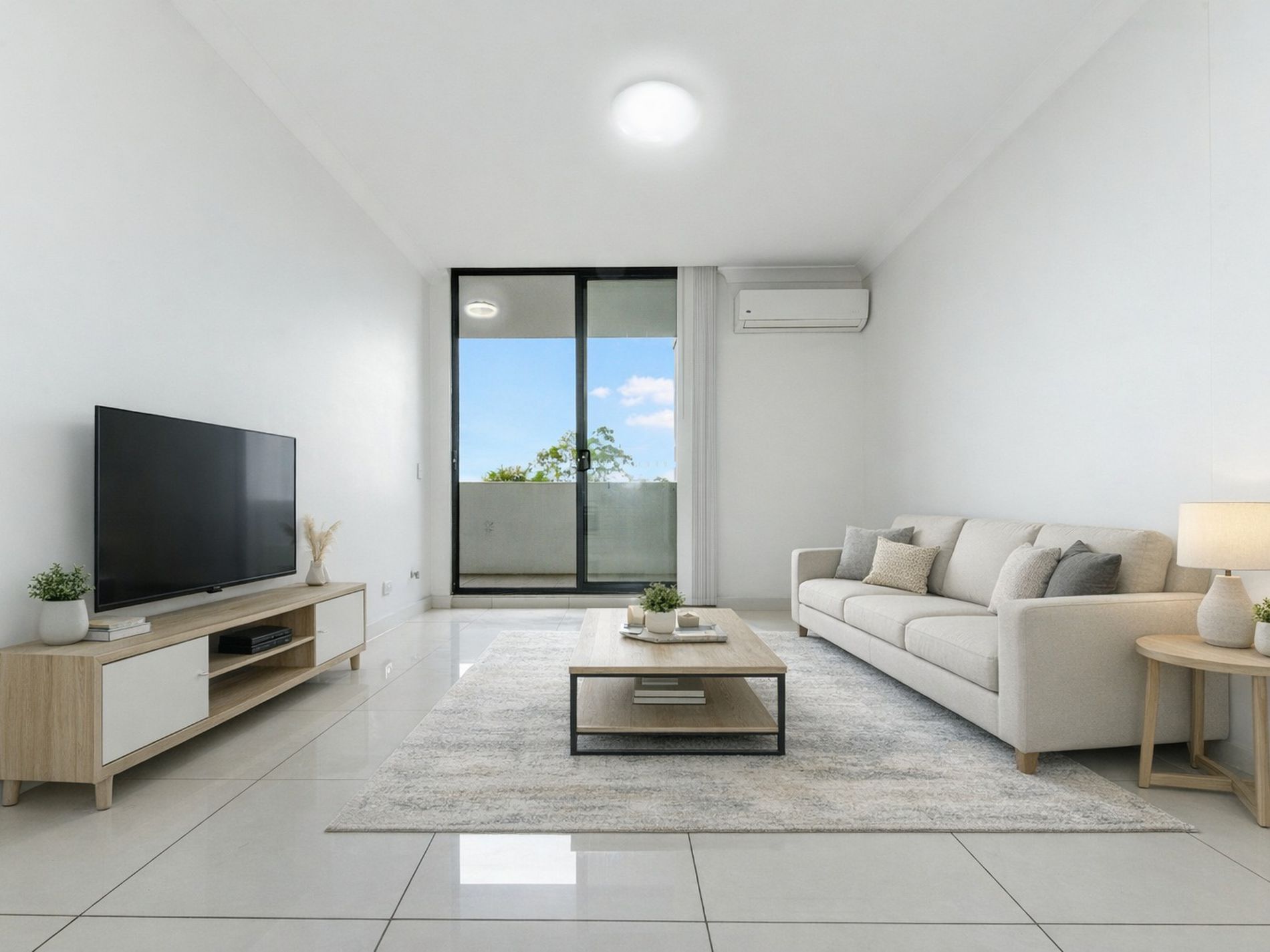 -Floor tiles throughout the living and dining areas with a reverse cycle air conditioning